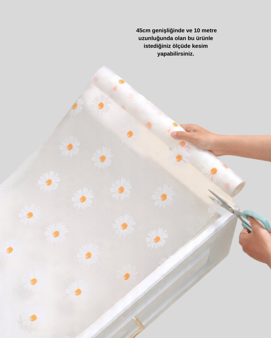 10 Metre Papatya Desenli Yapışmaz Kaydırmaz Çekmece Örtüsü
