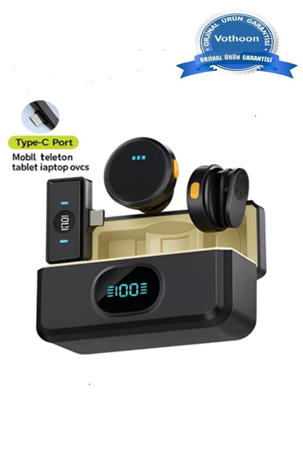 Kablosuz Profesyonel İkili Yayın Yaka Mikrofonu Şarj Kutu Mıknatıslı Typce Lightning Çıkış Mikrofon
