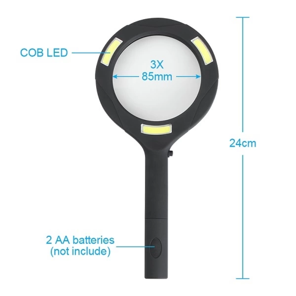 3 Ledli Işıklı El Büyüteci 250 Lümen Beyaz Işık Büyüteç 3x Zoom Tamirci Büyüteç Wt374