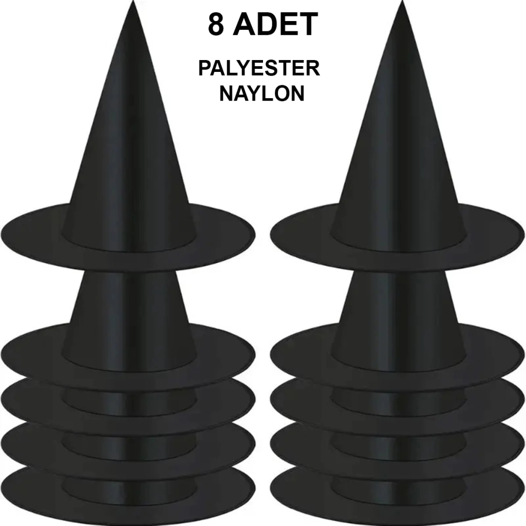 8 Adet Siyah Cadı Şapkası – Yetişkin Çocuk Kostüm Aksesuarı
