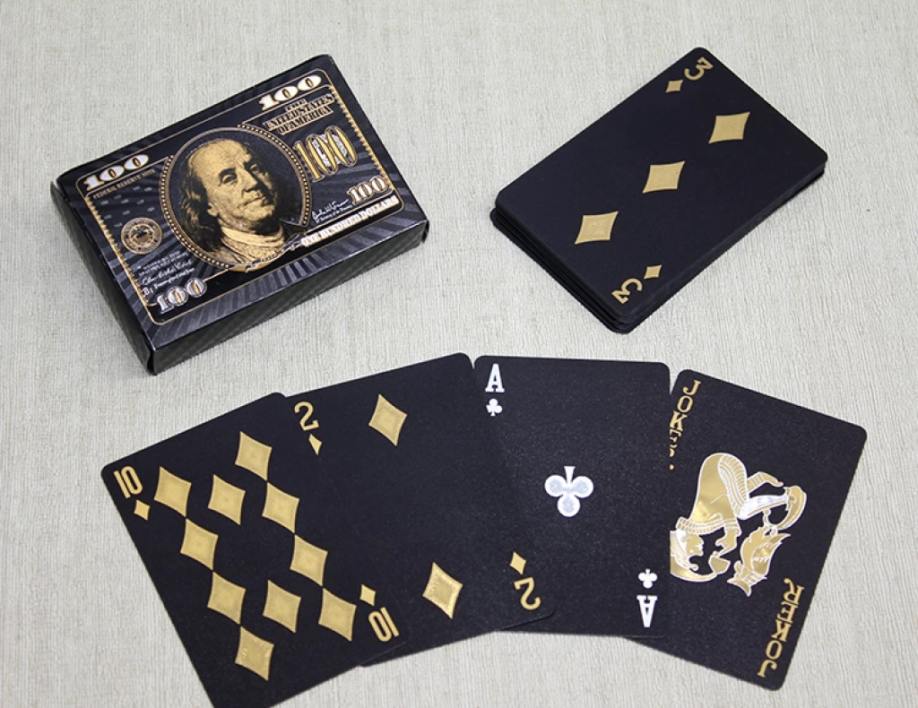 Altın Dolar Tasarımlı Siyah İskambil Oyun Kartı Alk4336