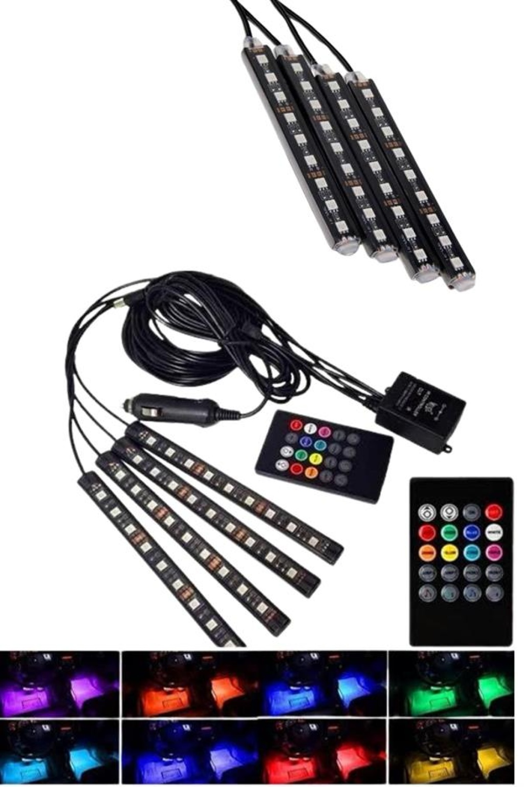 RGB Işıklı Araç İçi Aydınlatma Kumandalı 12'li Led Işık Renk Değiştirebilen