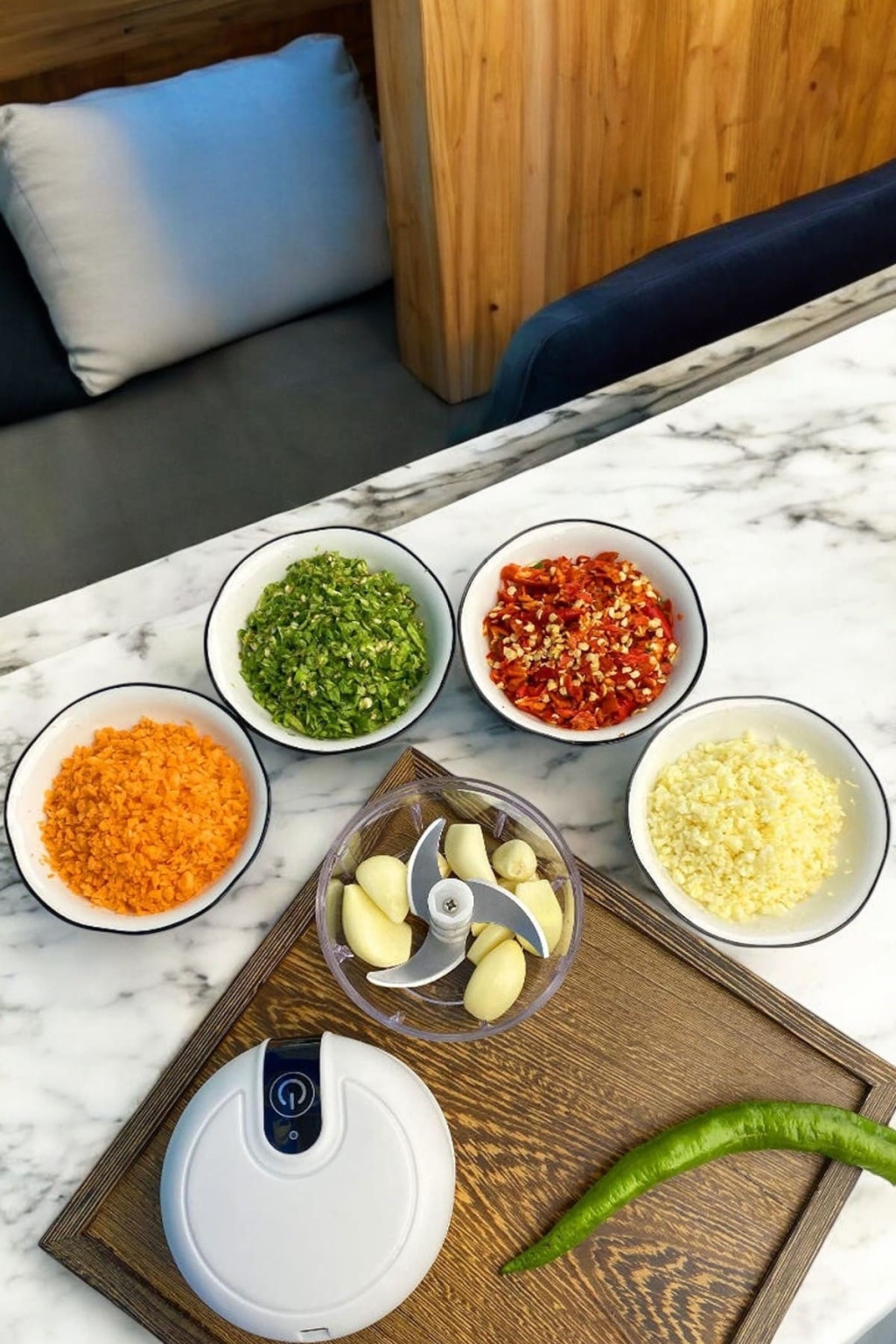 Şarjlı Portatif Doğrayıcı Mini Pratik Rondo El Doğrayıcı Üç Bıçaklı Çelik Bıçaklı
