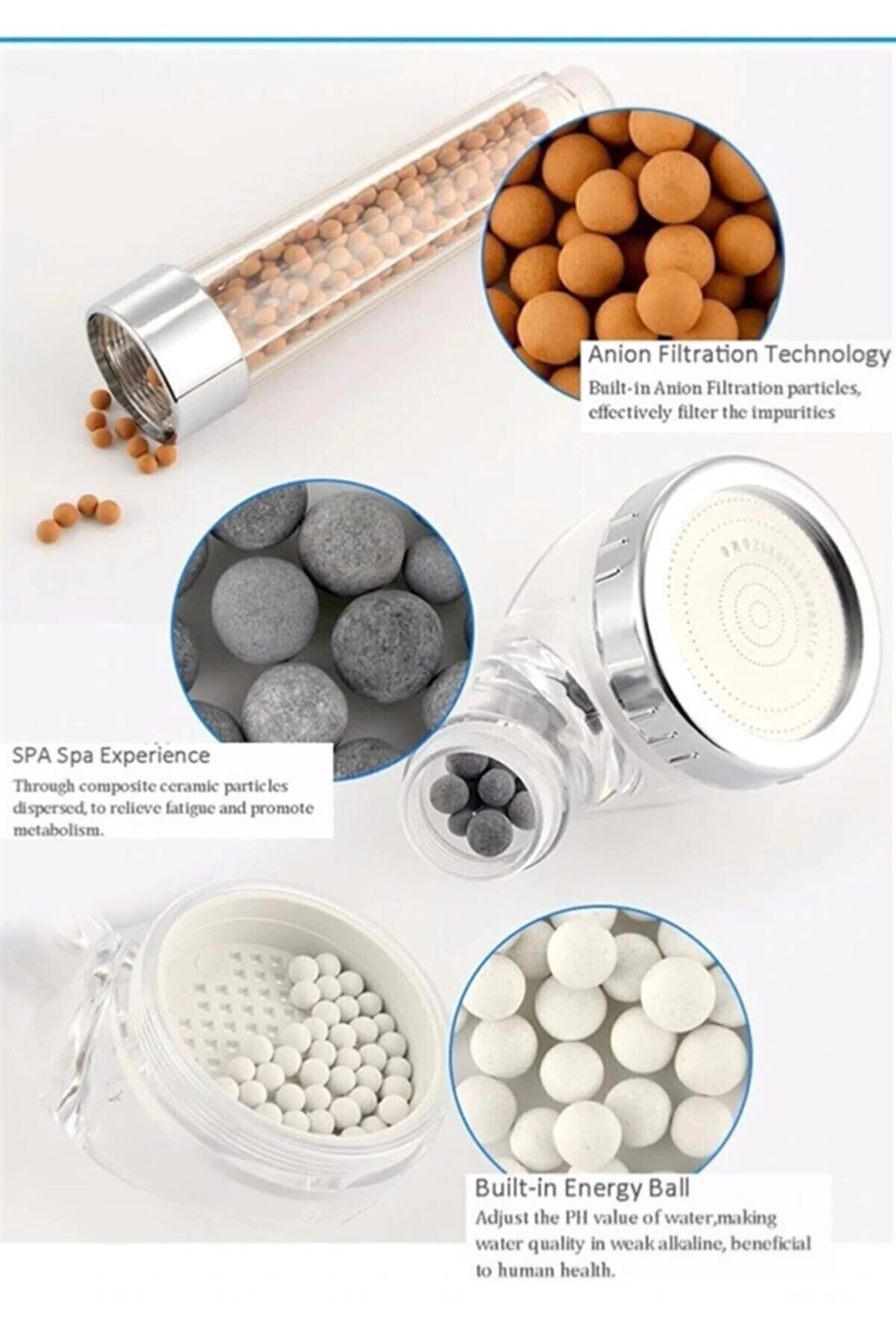 Filtreli Ve Su Tasarruflu Arıtmalı Duş Başlığı Seti Boncuklu Başlık Hortum Ve Mafsal Set