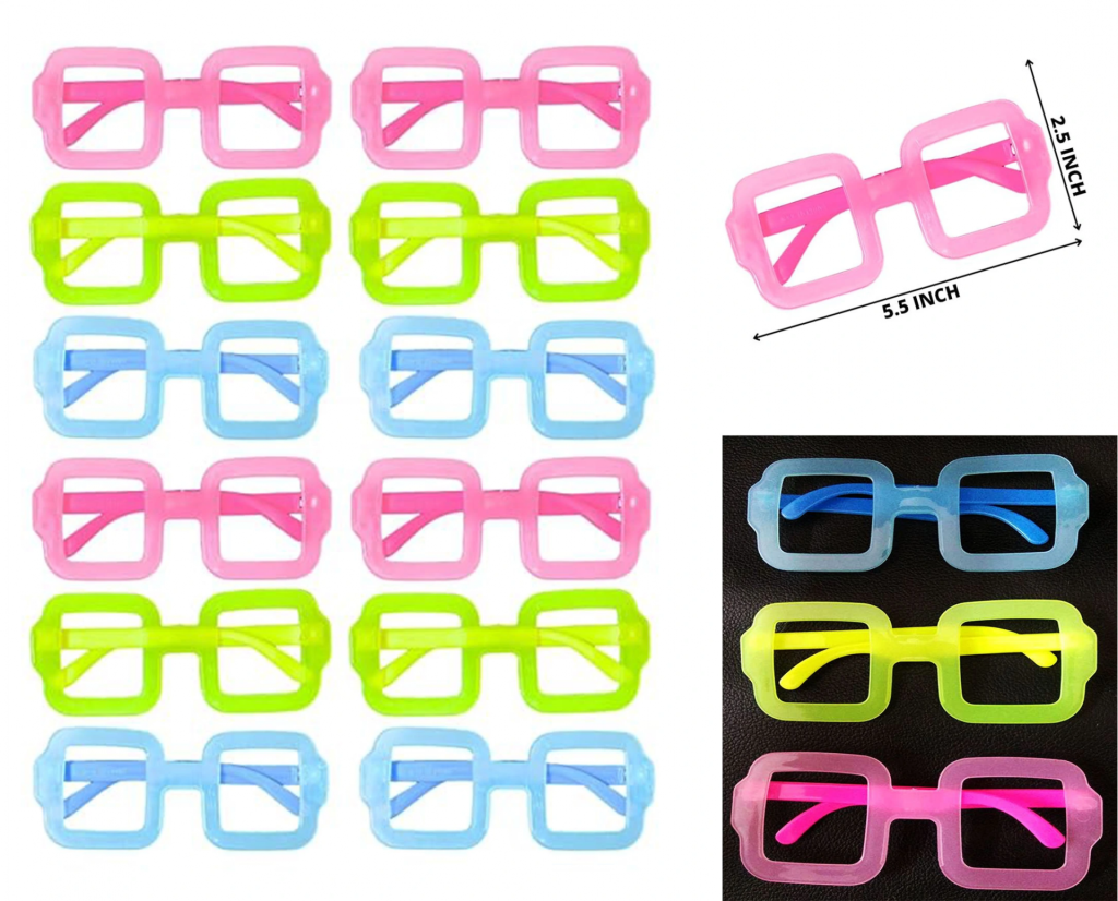 Fosforlu Kare Model Glow Parti Gözlüğü Karanlıkta Yanan Gözlükler 12 Adet