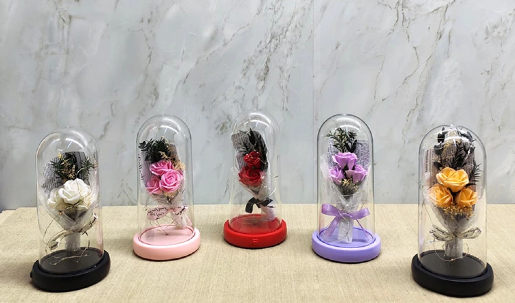 Led Işıklı Müzikli Cam Fanus İçinde Gül Buketi Alk5006
