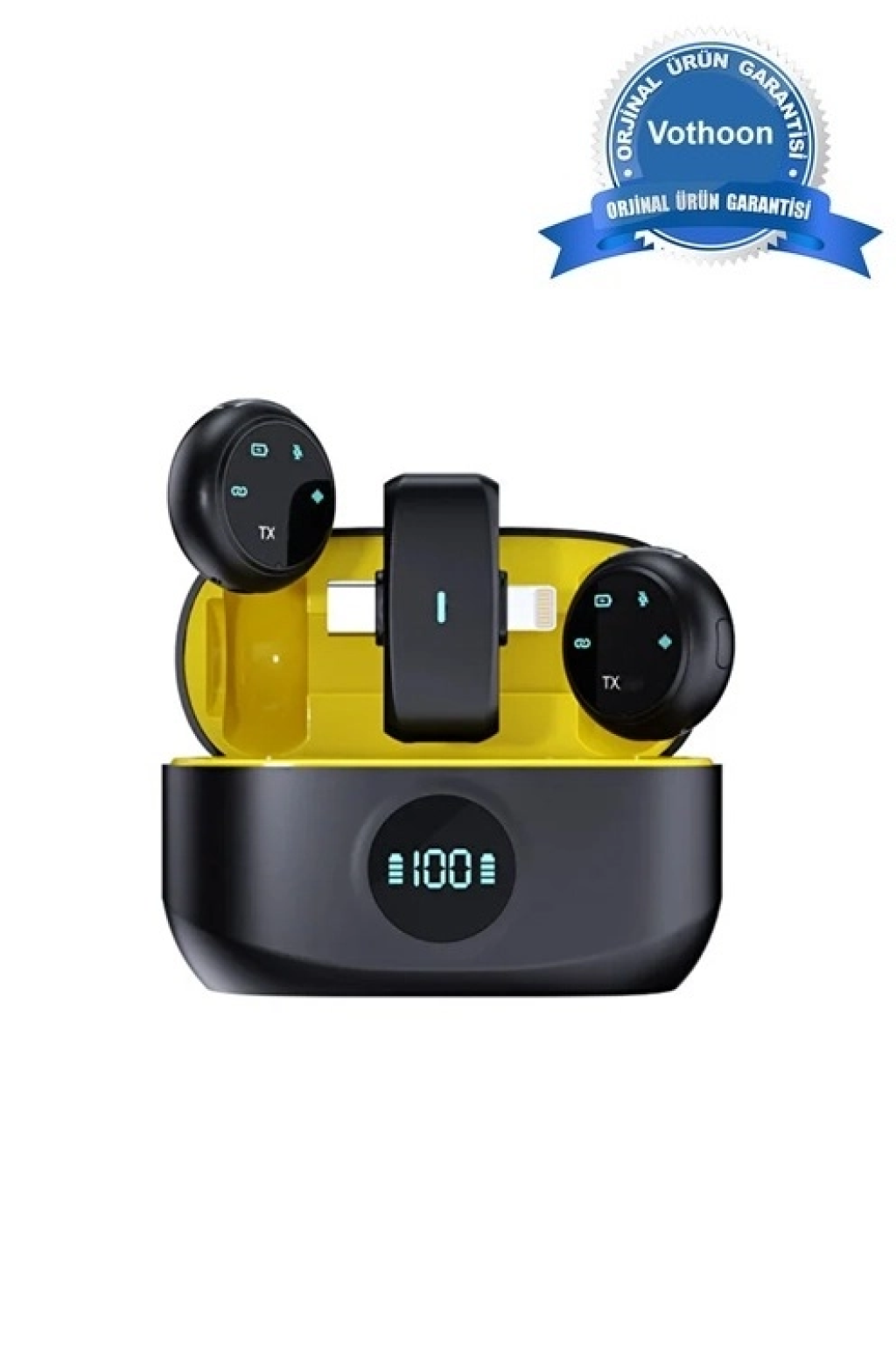 Kablosuz Profesyonel İkili Yayın Yaka Mikrofonu Şarj Kutu Mıknatıslı Typce Lightning Çıkış Mikrofon