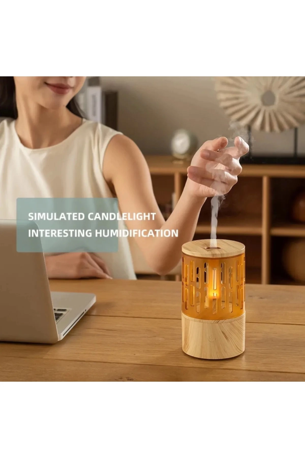 Mum Işığı Görünümlü Taşınabilir 125ml Kapasiteli Işıklı Aroma Yayıcı Hava Nemlendirici