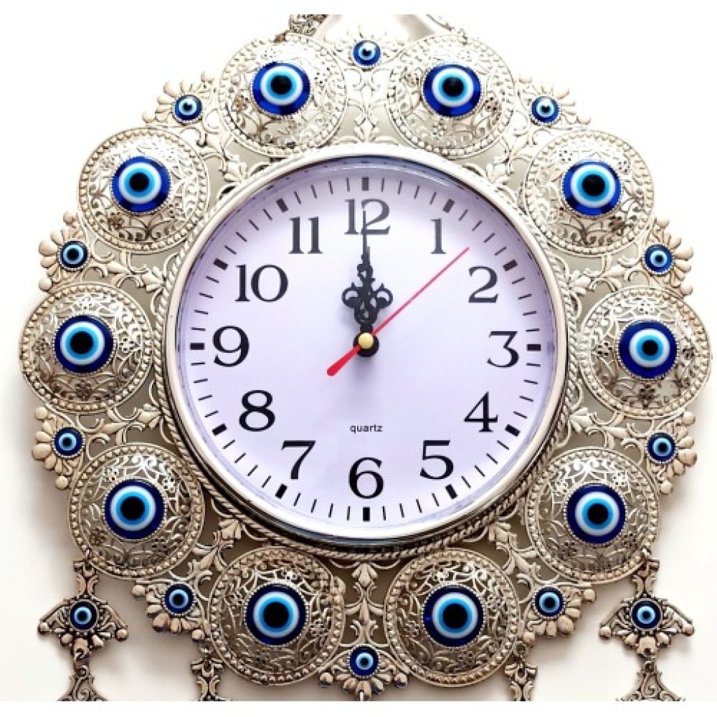 Nazar Boncuklu Gümüş Kaplama Solmaz Kararmaz Duvar Saati