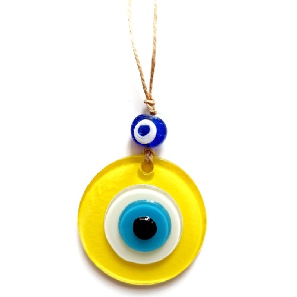 Nazar Boncuklu Sarı Renk Mini Duvar Süsü Dekoratif Hediyelik Cam Eşya