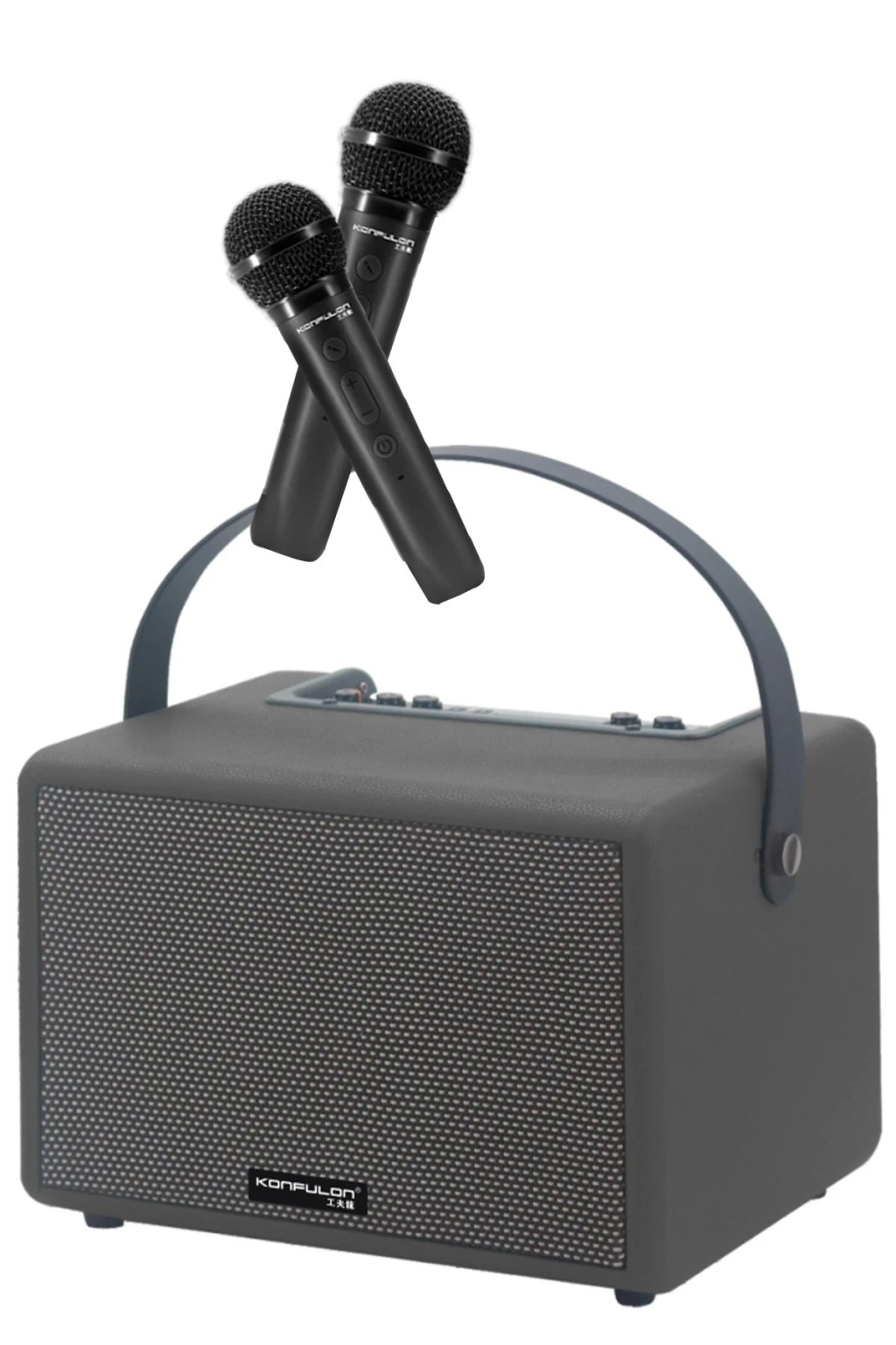 İki kablosuz mikrofon ile donatılmış