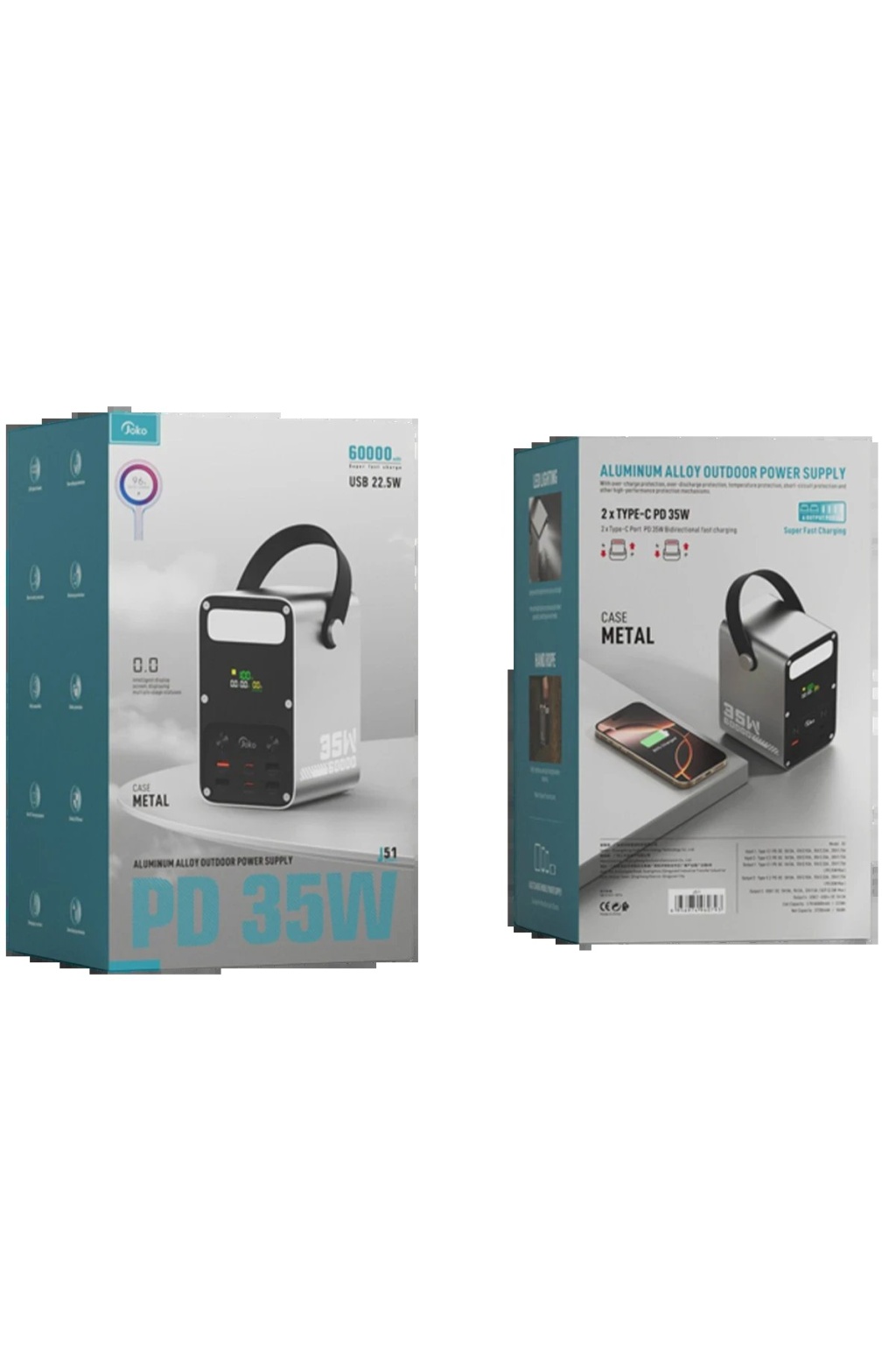 J51 60.000 mAh Dijital Sarj Göstergeli Led Işıklı 35W PD Powerbank