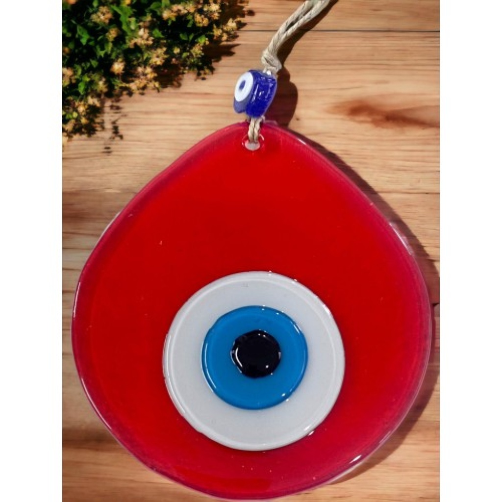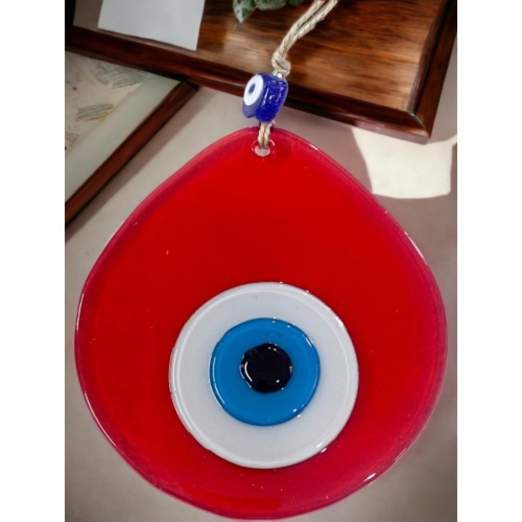 Orta Boy Şeffaf Kırmızı Damla Desen Nazar Boncuklu Duvar Dekoru Cam Duvar Süsü