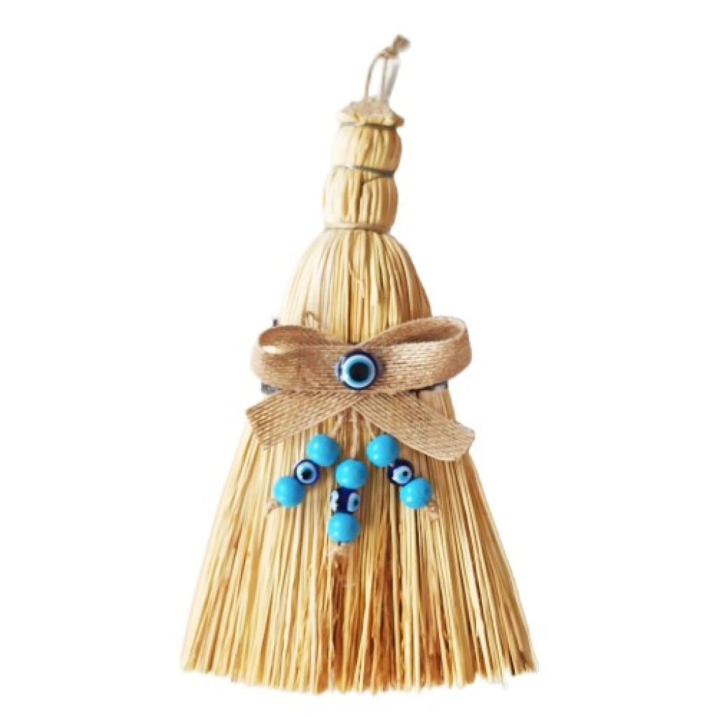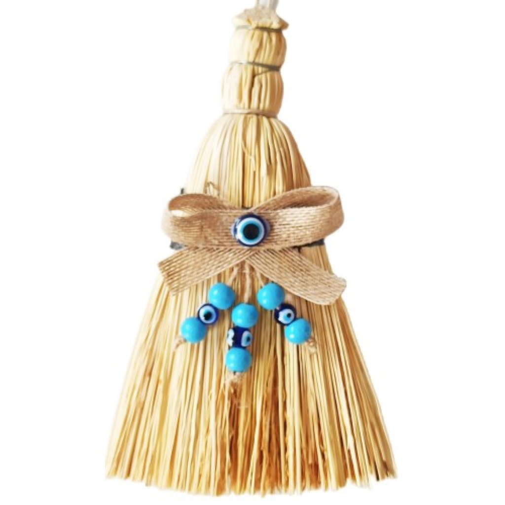 Otantik Ahşap Boncuklu Mini Süpürge Nazar Boncuklu Duvar Süsü