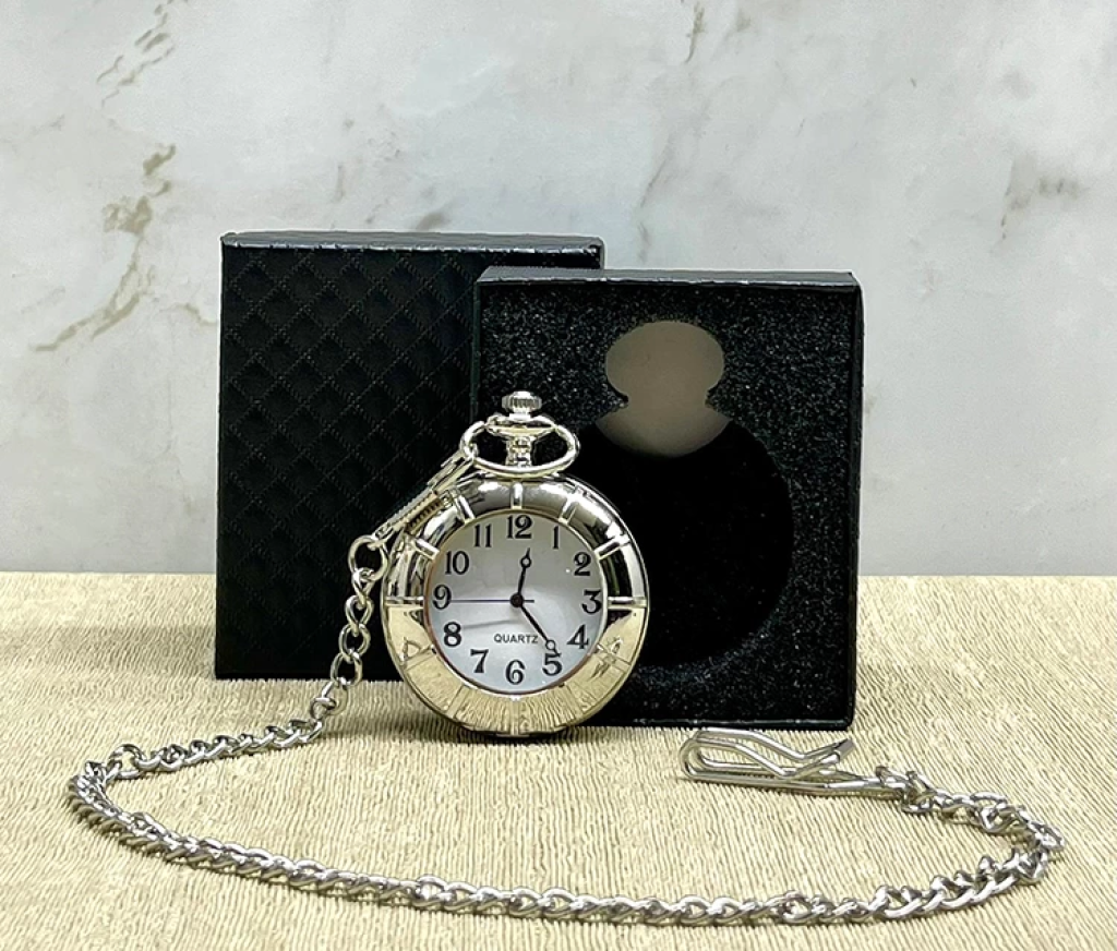 Özel Kutulu Tren Temalı Gümüş Köstekli Saat Alk4657