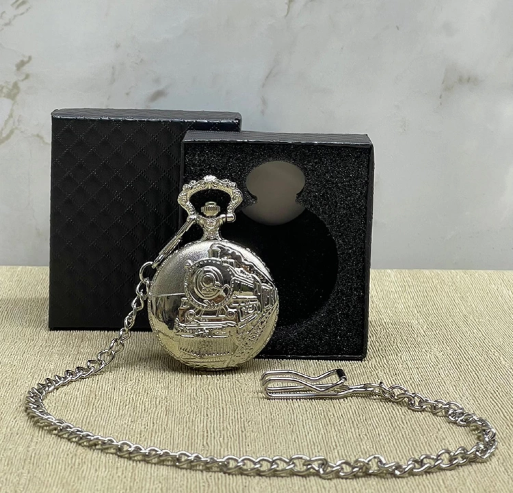 Özel Kutulu Tren Temalı Gümüş Köstekli Saat Alk4657
