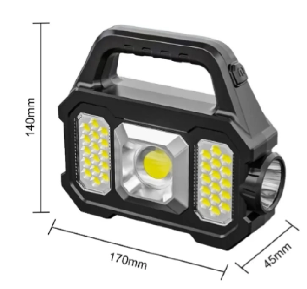 P-6678c Dış Mekan Solar Şarj Işığı Çok Fonksiyonlu Projektör Hazine Güçlü Işık El Feneri