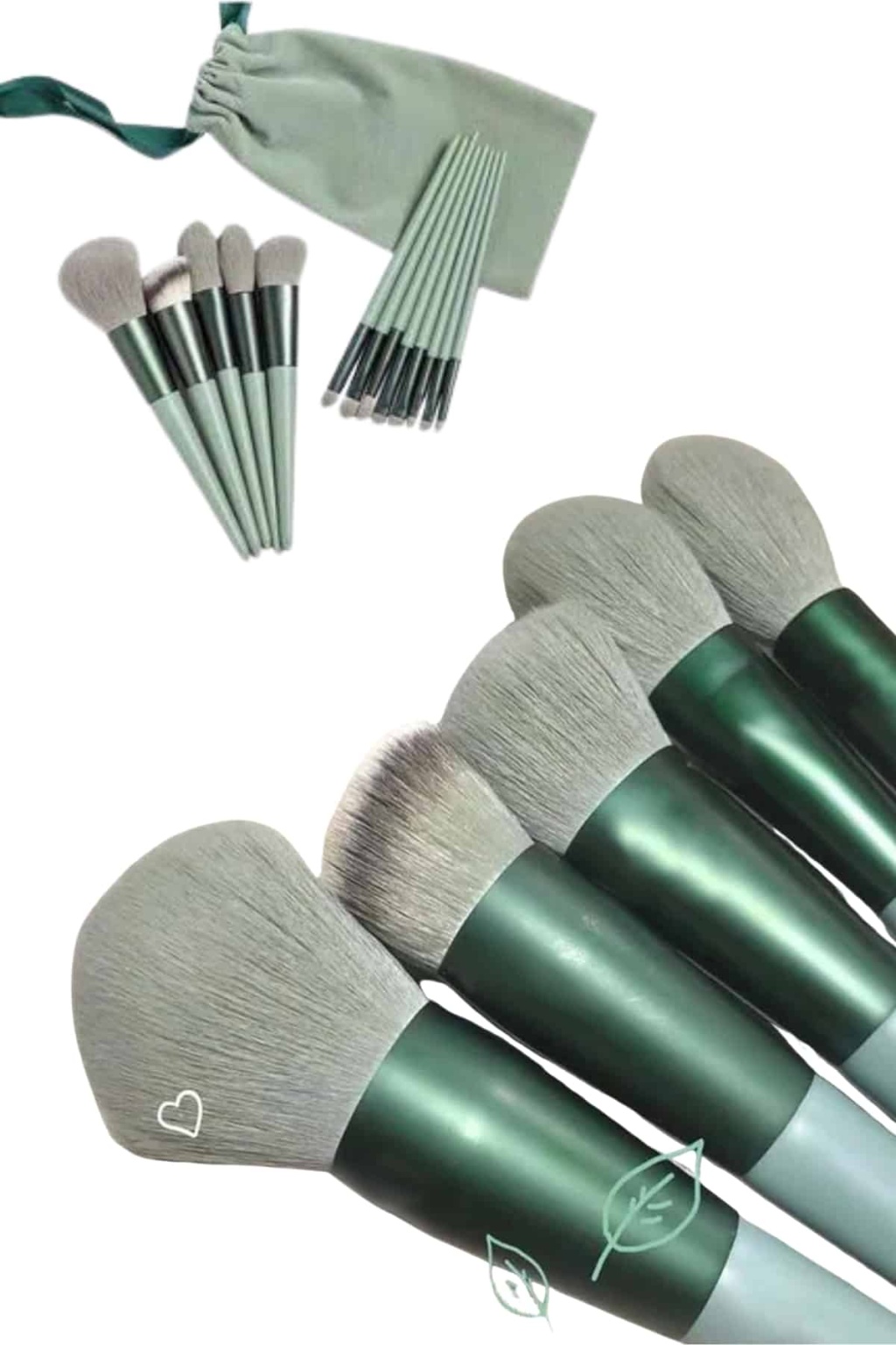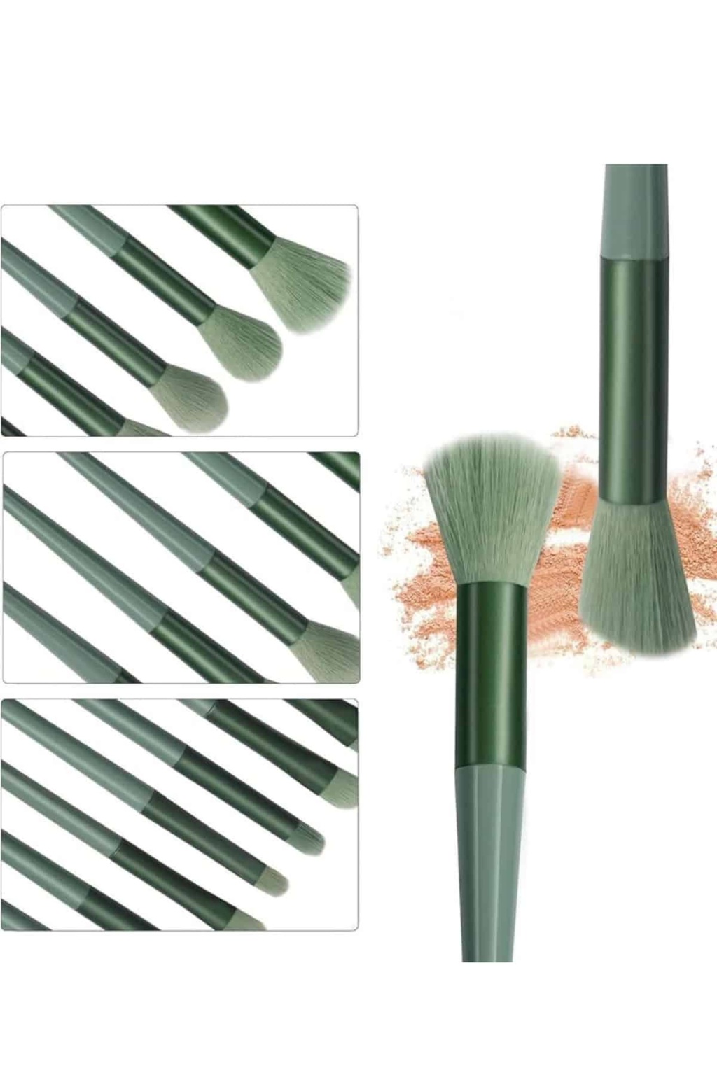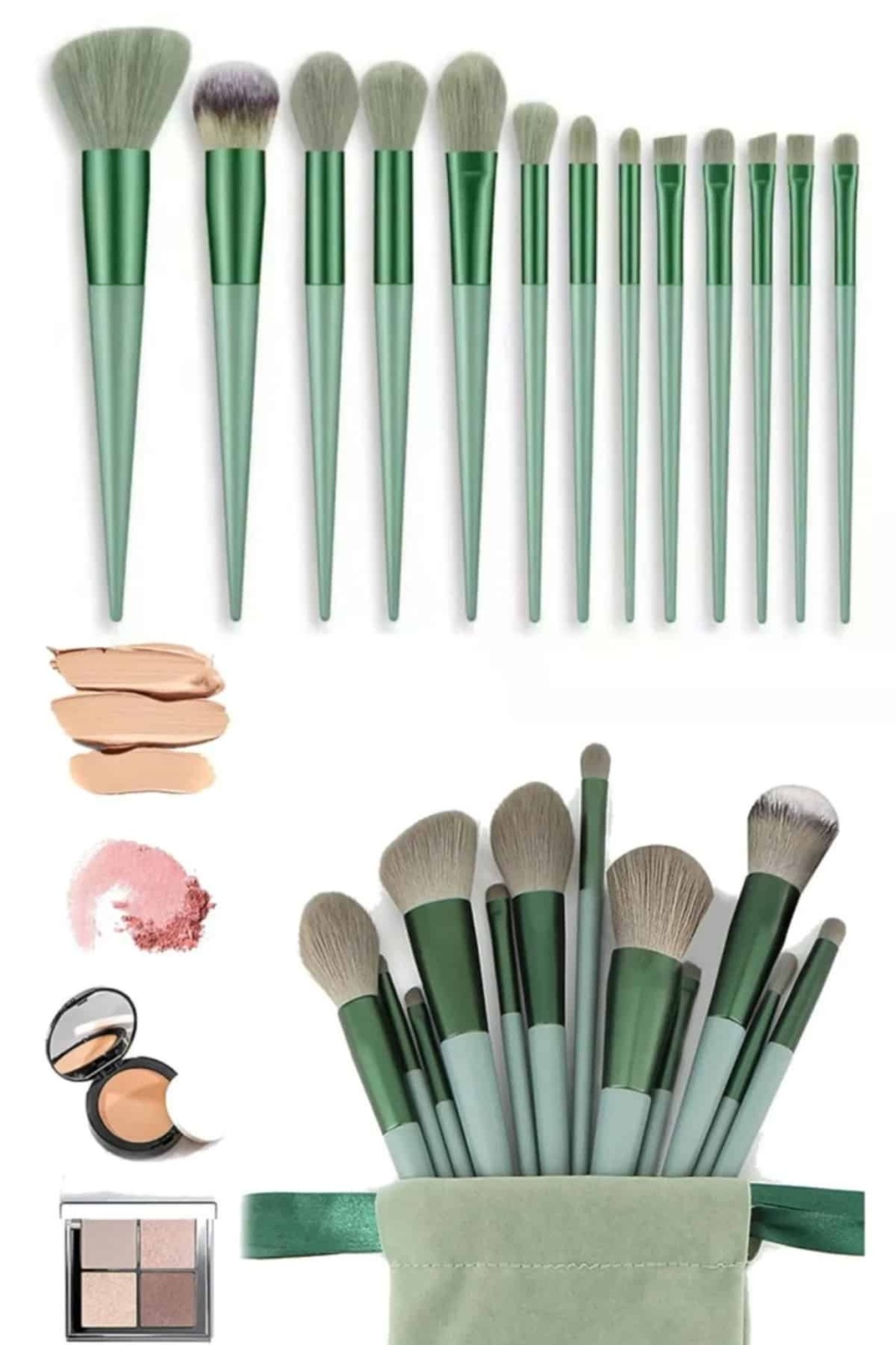 Makyaj Fırça Seti Yeşil 13 Parça Fondöten Fırçası Allık Fırçası Far Fırçası