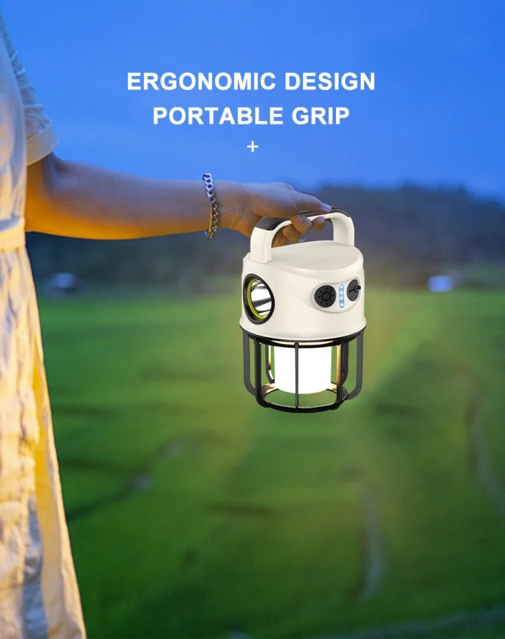 Ps-22025 Çift Işıklı Type-c Powerbank Özellikli Taşınabilir Şarj Edilebilir Kamp Lambası
