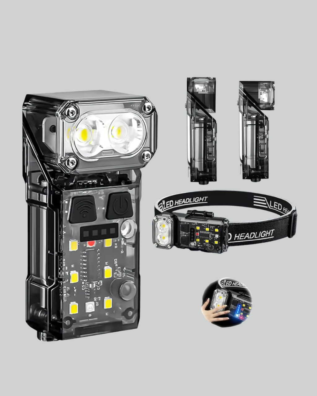 Şarjlı LED Kafa Lambası Manyetik Klipsli El Sensörlü Çok Fonksiyonlu