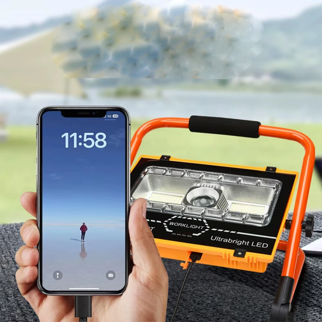 Wt-734 P70 Led Solar Panel Şarjlı Taşınabilir Projektör (176 Smd + Yan Led)